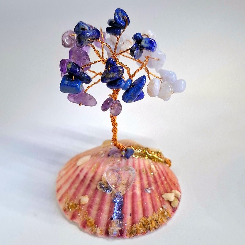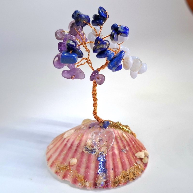 L’ arbre de vie en améthyste mixé avec du lapis-lazuli et de la calcédoine mesure environ 08cm x 5cm.