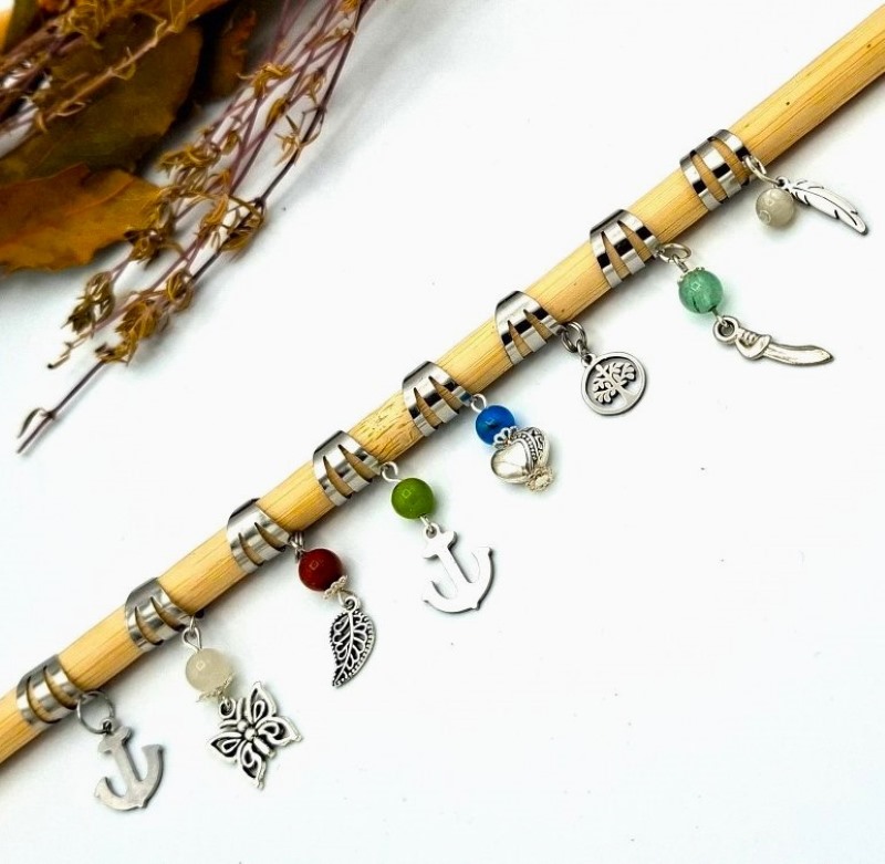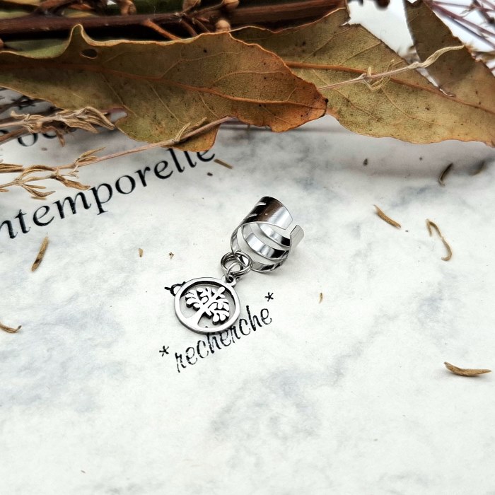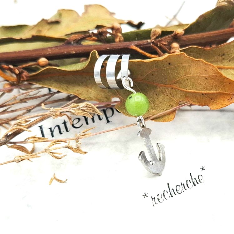 De plus je lui ai ajouté une tige inox au bout de laquelle pend une breloque feuille ajourée.