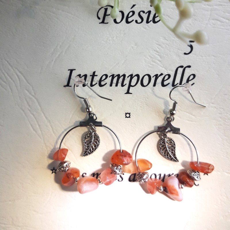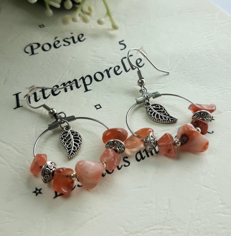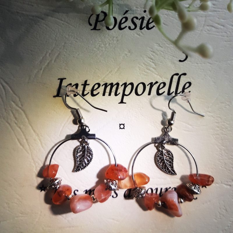 Ces Boucles d’oreilles en cornaline et cristal est en perles gemme naturelles.