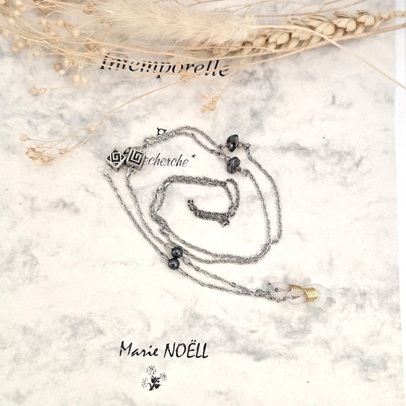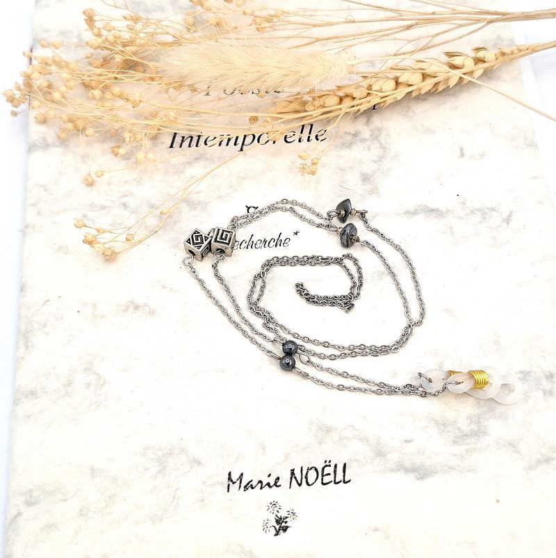 Ce cordon à lunettes chaine avec perles naturelles en hématite est à la fois pratique, léger et chic.