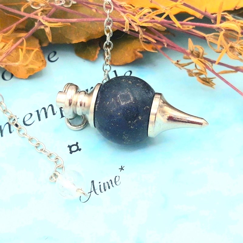 Le Pendule lapis-lazuli sphère en pierre gemme naturelle est très joli avec sa couleur bleu marine parsemé de pyrite.