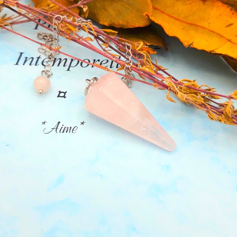 Le Pendule quartz rose en pierre gemme naturelle est très joli avec sa couleur rose pastel translucide.